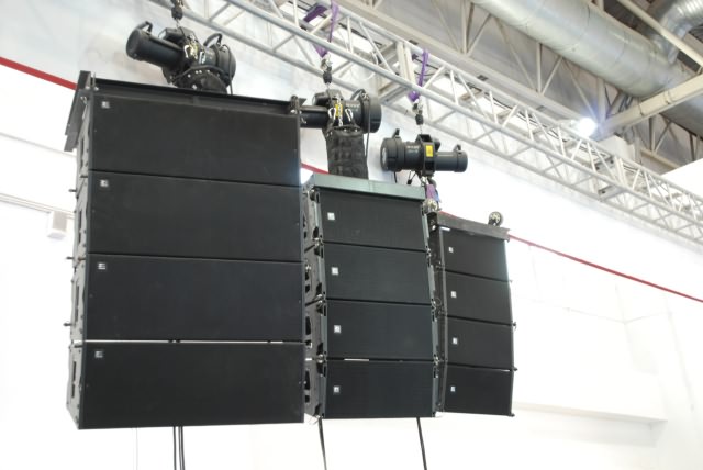 在2014年5月26日—29日的PLAM展中,声扬带来了三款新品音箱,型号分别为VCM、VCS、KCA。销售总监黄春萍介绍说,VCM线阵列音箱是一个中型三路驱动的三分频系统,提供50Hz-16KHz的频率范围,两个44mm(音圈)的钕磁压缩高音单元,1个8寸中音单元加上两个10寸钕磁低音单元构成一个动态余量极大的组合,中高音同轴结构,具有HIFI级的听感,弹性的低频,柔软纤细的高频,可预置角度的吊挂件,适用于中大型流动演出,体育场馆。
