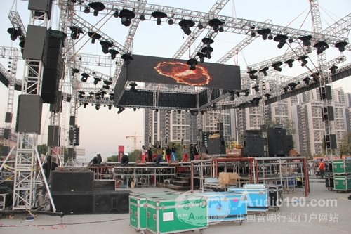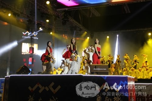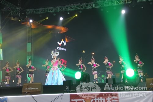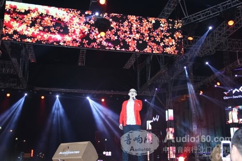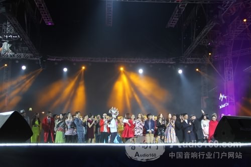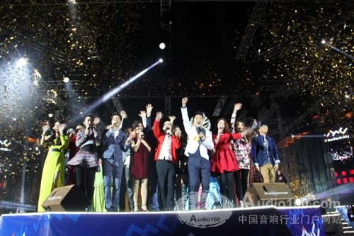 晚8:30,跨年盛典在万众期待中拉开帷幕,此次盛典引入大型跨年迎新晚会的模式,现场近4万观众共同参与倒计时迎新年。这也是广西首次启用四面台进行跨年晚会演出:四面舞台,即从四个方向能无限接近演出的舞台,这种舞台能给现场观众以全方位的立体效果,四面看台观众都能与台上的演出和心中的偶像明星无限接近,开心互动,所有观众都能得到最大程度的满足。这种舞台对场地、节目编排调度和舞台声、光、电手段的运用及设备都有较高的要求,对表演者的状态和表现力也非常苛刻,即使是明星演唱会也不多见。奥雷音响参与担纲此次盛典现场扩声,舞台左右PA主扩使用的是奥雷V-HLA12MKII线阵扬声器系统,20只奥雷PF15+全频扬声器做舞台返听系统。