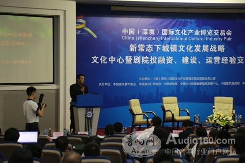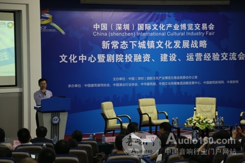 5月13日,由中国(深圳)国际文化产业博览交易会主办、中国演出行业协会、中国建筑装饰协会等多家单位联合承办的文博会专题论坛“新常态下城镇文化发展战略——文化中心暨剧院投融资、建设、运营经验交流会”在深圳的中国脑库举行,这是我国首次将文化复兴及文化惠民与城镇文化中心及剧院等基层文化建筑实践相结合的一次盛会。剧院建设专家中孚泰谭泽斌提出的剧院建设应当集群化、社区化、专业化、标准化的观点,得到了与会各方的高度评价。
