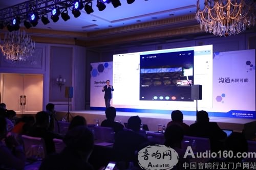 本次活动现场演示了基于Skype for Business平台,通过TeamConnect实现位于上海半岛酒店的会场与位于广州的微软技术中心两地之间的音视频通话,提供给嘉宾更加直观的优质产品体验。作为平台服务合作伙伴的微软中国区解决方案部高级经理刘浩提到:“Sennheiser的多款产品与Skype for business兼容,均加入了BYOD(bring your own device)自带设备友好的功能,可以与个人移动终端设备 (手机、电脑、个人平板等 ) 相连通。”