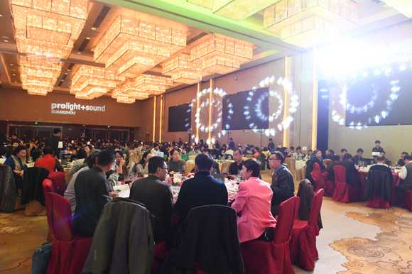 2019广州国际专业灯光、音响展览会答谢晚宴座无虚席,主办方向与会人士举杯祝酒。