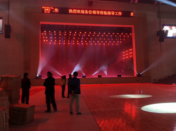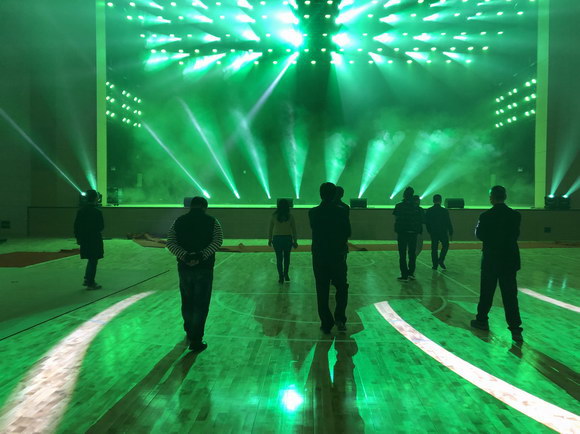 中山大学新华学院东莞校区体育馆舞台灯光系统由锐声旗下代理品牌产品V-light和筑梦DLW系列灯具打造。