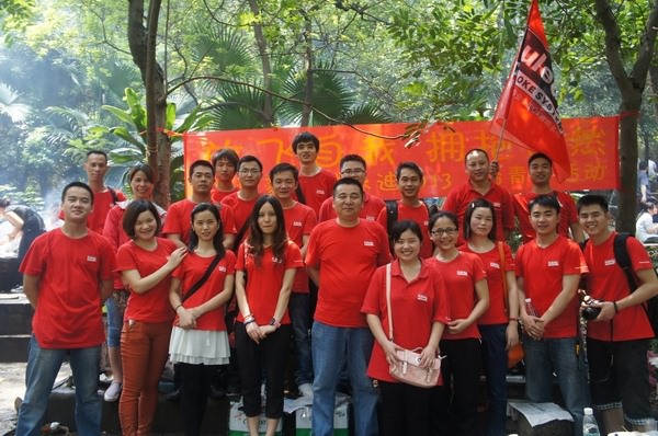 4月20日的早晨,太阳不像预想中的一样照常升起,但是,即使是阴天,我们的热情依然高涨。9:00收拾好行李、烧烤的食物、工具、还有其他用品之后,我们在章萍福章总的带领下踏上了菱杰2013“踏青”之旅。在公司到广州番禺大夫山森林公司的路程中,我们就像看川剧变脸似的看天气,忽雨忽晴,没个定数,但是我们的心情却像7、8月份的太阳一样灿烂。到达大夫山之后,我们停车、下车、租车、骑行,在熙熙攘攘的人群之中,我们就是一道火红的风景线。天公不作美,我们刚刚租好单车之后就下起了大雨,这是一场很酣畅的大雨,滂沱的下了接近半个钟之后,慢慢放晴,大夫山的空气中夹杂着泥土的芬芳,这让很多久违家乡的朋友想起家乡的土地和家乡的人。天空慢慢放晴,于是在偌大的大夫山森林公园中,我们这一抹火红的风景就成了外加在大夫山上的流动风景,我们的KULEDY旗子和小龙小虎的LOGO就这样在大夫山森林公园里飘移。虽是雨天,但是骑行的游人、烧烤的游人、踏青的游人依然是人山人海,我们就这样在游人们的惊叹和羡慕的眼光中骑行到达了南山烧烤场。