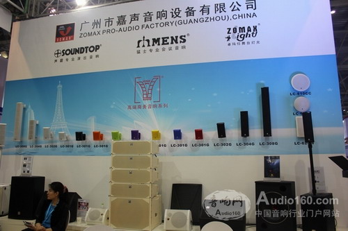 广州市嘉声音响设备有限公司是一家集研发、设计、生产、销售和服务于一体的大型专业音响制造服务商,公司与世界顶级声学研究机构签订了全面技术合作协议,创立了自主品牌SOUNDTOP、MENS、ZOMAX的专业音响产品及应用系统。此次PALM 2013展会,嘉声公司隆重发布了MENS品牌DP+钻石系列、VENUE品牌CO-ND同轴音箱、Soundtop品牌SF+超级战士系列、LC美极商用音响系统、四通道模组式功放等多款产品。