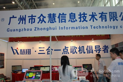 这次参展,众慧展出了最新的三合一高清点歌机HX-Q5。19寸LED液晶高精度红外屏,超大存储(最大支持4T),黑、白、红、蓝、绿、金、粉红7种主流颜色,HDMI高清接口,播放画面分辨率高达1920*1080;具备超级搜歌、U盘播歌、U盘加歌、刷屏功能、歌星反查、手写识别、触摸点歌、在线播放、网络歌库下载、自动排行、幻影同屏画中画等功能。