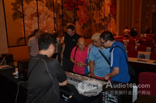 来自美国的Robert Scovill,为新品Avid S3L 紧凑型网络架构调音台作现场示范和讲解。资深的Robert 以其录音技术和制作天赋在业界享有殊荣,更荣获2012年“音响界奥斯卡”之称的Parnelli年度混音师大奖。