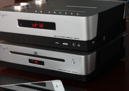 凯音MM-5蓝牙版最大的变化在与功放上,蓝牙版在功放机增设了蓝牙功能,可无线连接并播放手机里的音乐内容,为您带来更便捷使用体验;和之前版本一样,功放机有多种输入端口用于对接不用的音源,机身前面板的USB接口不但可以部分U盘内的MP3、WAM等压缩格式的音乐,还可以播放WAV、APE等无损格式音乐。最大程度的还原出接近CD的声音品质,SD卡槽以及iPhone、iPod的通用底座依然保留着。在机身的后面板增加了蓝牙连接开关,如需使用蓝牙无线播放功能只需按下此处的蓝牙开关即可。
