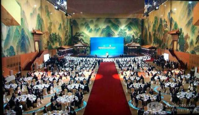 APEC晚宴选址在水立方,晚宴客人的脚下就是游泳池。地板上镶嵌玻璃做成镂空效果。透过玻璃可以看到地板下的水池,水池中还有五彩缤纷的鱼,景象非常梦幻。但是在这种环境中要达到完美的音效是非常困难的。习主席在主席台上讲话使用了4支Sennheiser MD 441话筒。