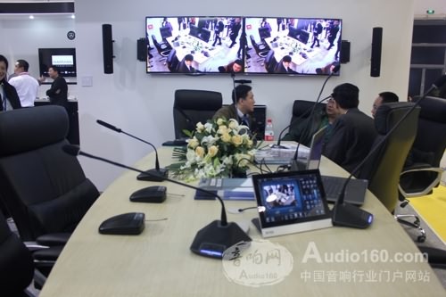 AKG设有静态展示区, 对会议系统涵盖的模组鹅颈话筒,自动话筒混音台,界面话筒等一一展示,同时通过视频进行了CS3会议系统管理软件的现场演示。演示现场人头攒动,感兴趣的客户们还争相提问。