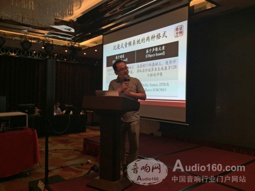 由此话题展开来,东方佳联市场总监刘燊先生向来宾介绍了影院/游乐园/博物馆三维音效解决方案,从电影立体声和环绕声发展出发,阐述了最新不同类型的沉浸音格式。除了基于物体声像定位沉浸音原理的讲解,特别着重介绍了在球幕环幕,演艺演出秀,展览展示中中如何利用沉浸音营造三维空间效果,将视听体验推向极致的。讲解中展示了大量国内外的应用案例,大部分来宾对此部分内容都是第一次了解到,现场大家都屏气凝神,专注于理解最新的三维音效沉浸音技术。