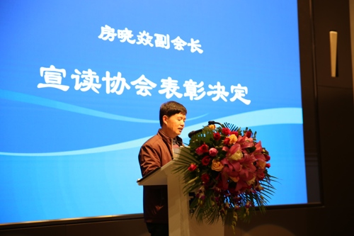 协会副会长、国光电器股份有限公司副总裁房晓焱在会上宣读协会2017年度表彰决定。