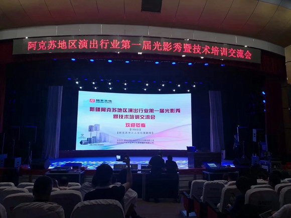 由阿克苏锐丰时代文化创意有限公司主办 ,广州市锐声灯光音响器材有限公司协办的“新疆阿克苏地区演出行业第一届光影秀暨技术培训交流会,已于2019 年7月6日、7日两天在阿克苏市工人文化宫剧院圆满落幕。